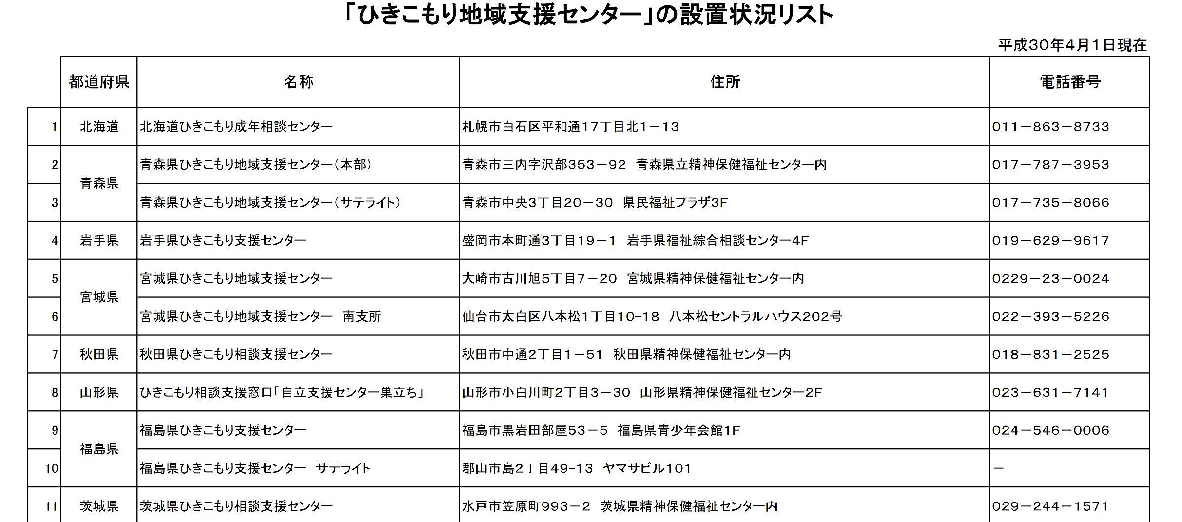 - 4 全国「ひきこもり地域支援センター」の設置状況リスト