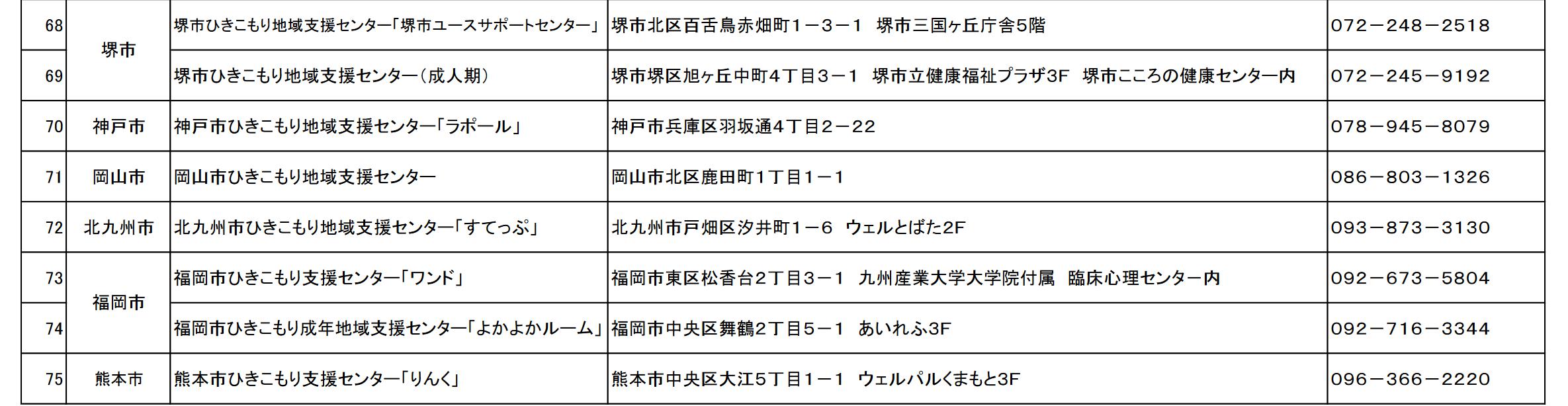 福岡市内の不登校やひきこもりの相談機関にひきこもりの居場所活動など、たくさん紹介されています。