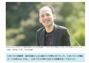 発達障害者でつくるグループの交流会や講演会で、自らの不登校や引きこもり体験をオモシロおかしく伝えている方の記事が紹介されていました。